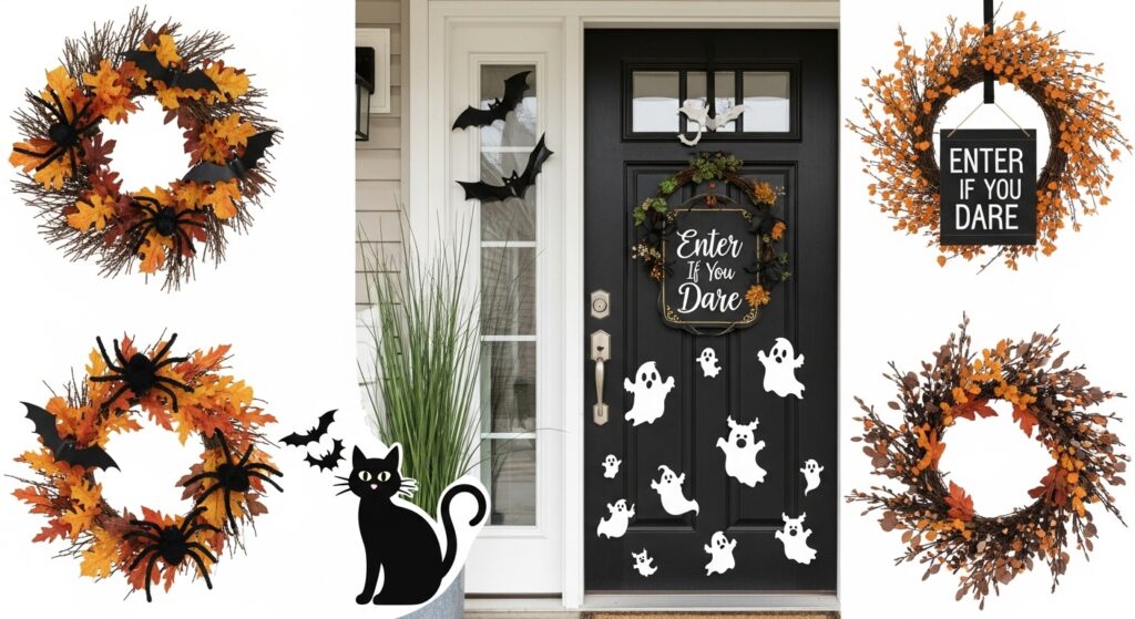 Peel-and-stick bats or ghost decals instantly transform plain walls or doors. They’re reusable, inexpensive, and mess-free.
