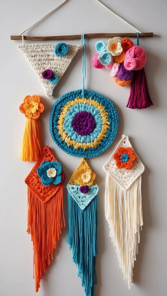 - Crochet triangles, circles, or flowers