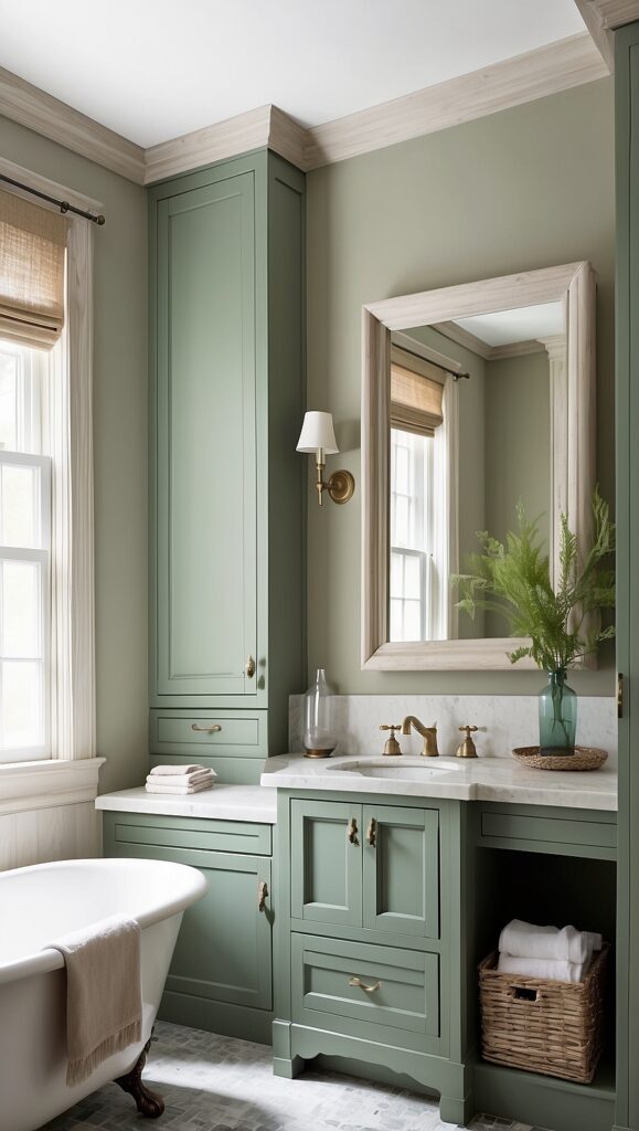 Modern bathrooms often rely on neutral tones, but rustic and vintage styles allow for richer hues.