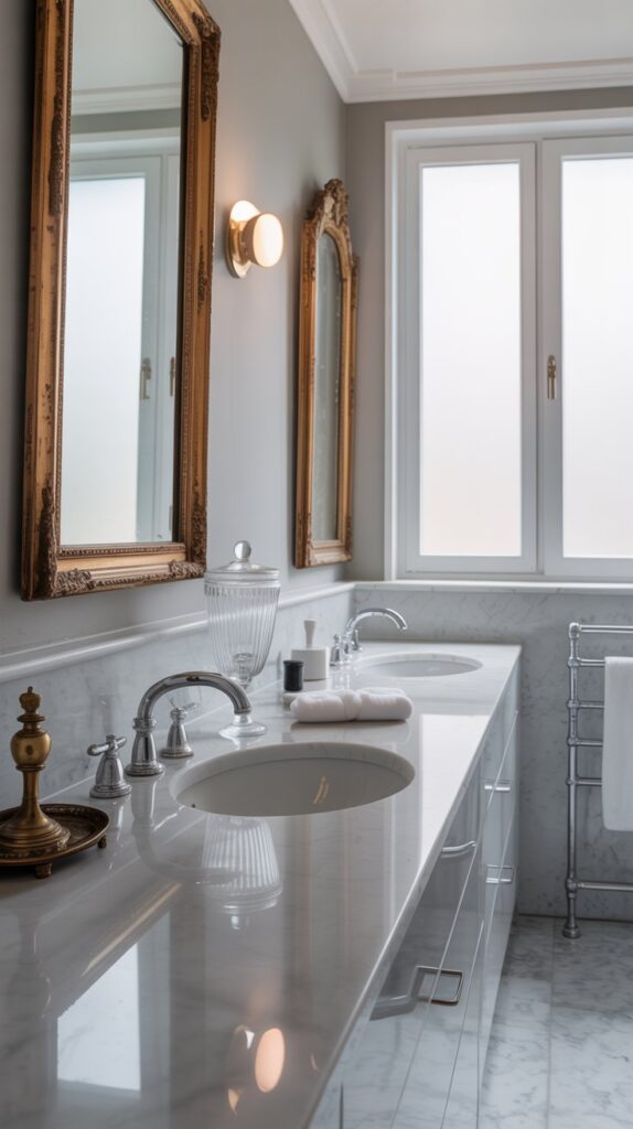 Place a vintage mirror above a modern floating vanity to create a striking contrast. This single element can instantly elevate the entire bathroom design.