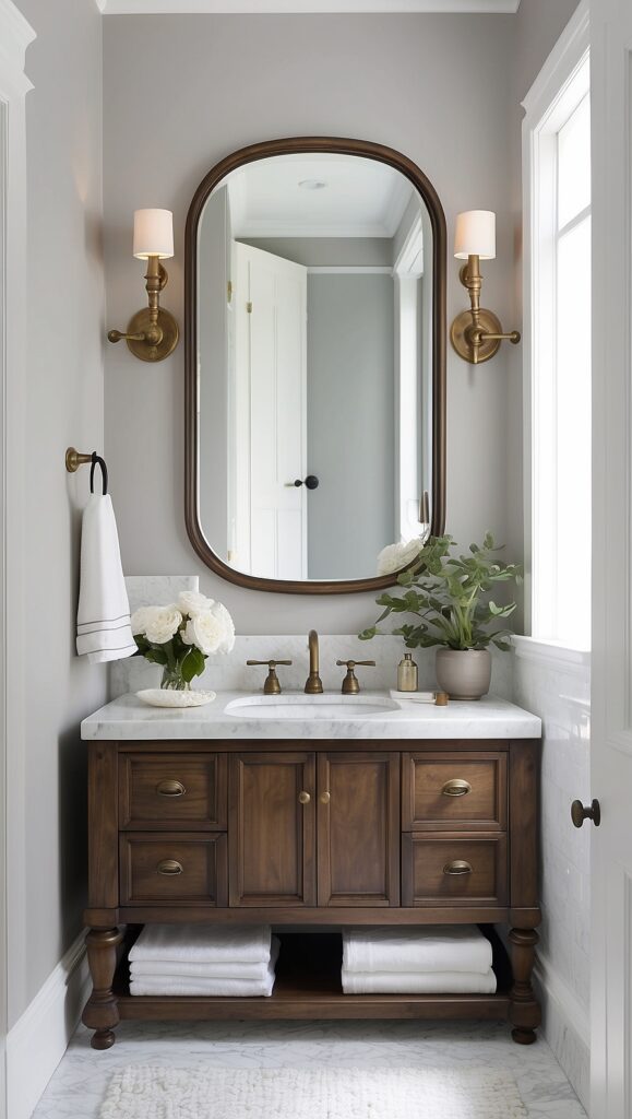 - Arched or oval mirrors reminiscent of old-world design
