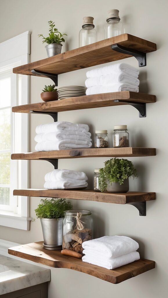 8. Add Open Shelving with Rustic Character