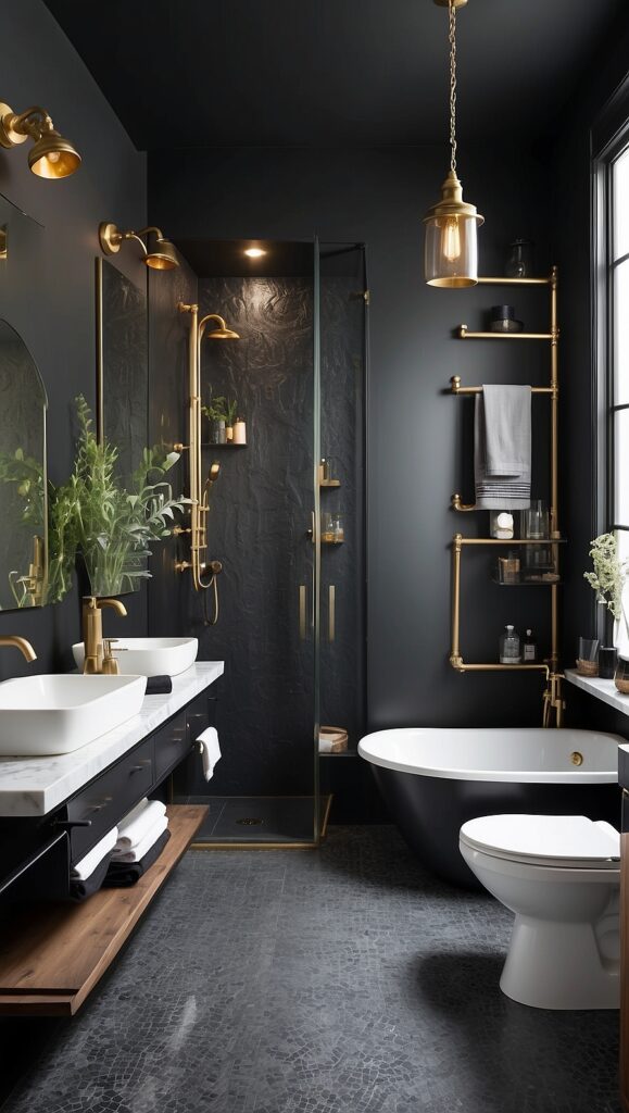Vintage and rustic bathrooms often feature warm metals, while modern bathrooms favor chrome or matte black.