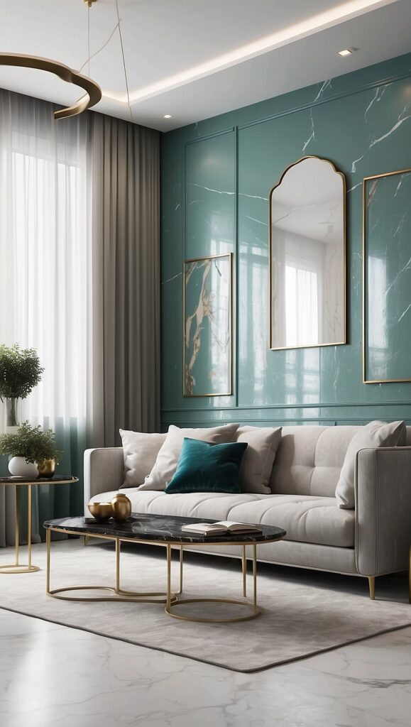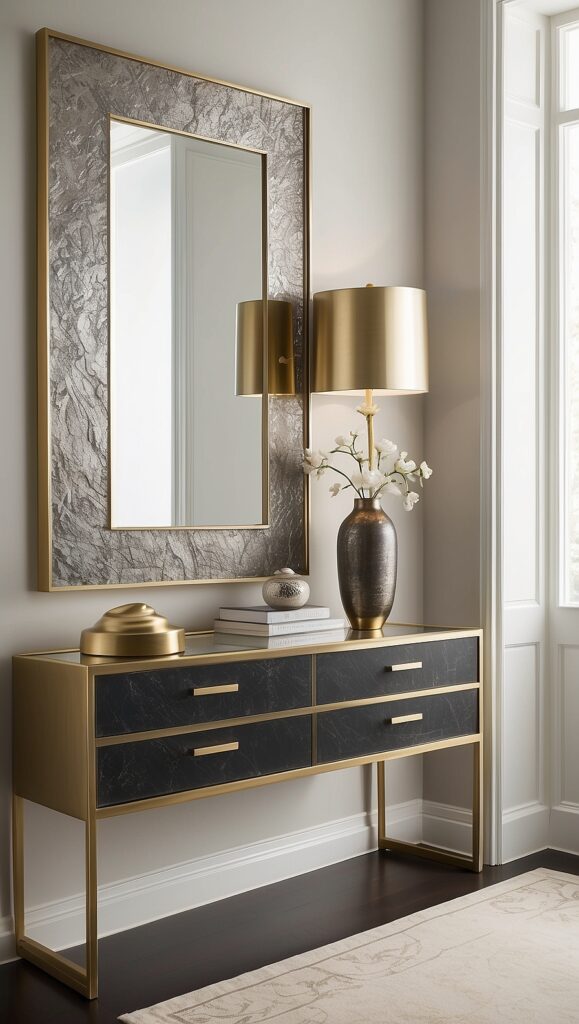 Instead of filling the room with metallic pieces, use them strategically. For instance, a brass table lamp, gold-framed mirror, or bronze drawer handles can elevate the overall aesthetic.