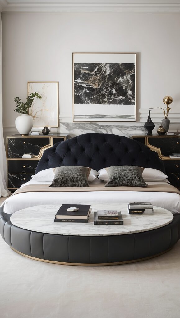 Luxury bedrooms often include one or two statement furniture pieces that draw attention.