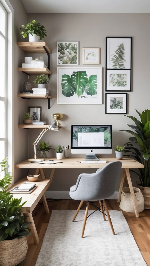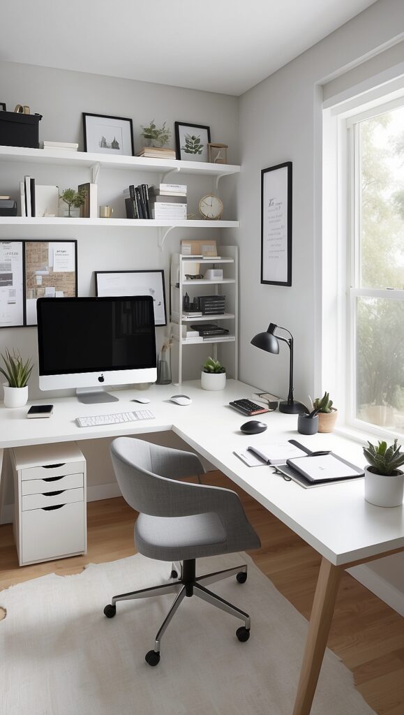 Comfort elements like a soft rug or cozy throw can warm up the room without interfering with productivity.