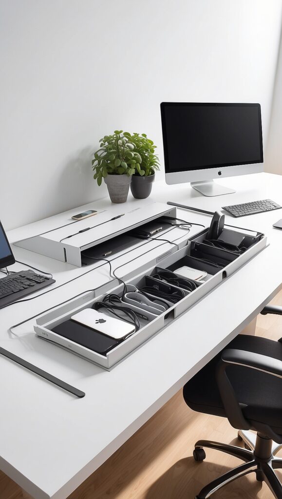 Keep essential tools within arm’s reach. Use drawer organizers or cable trays to reduce clutter. Clean lines instantly elevate the aesthetic.