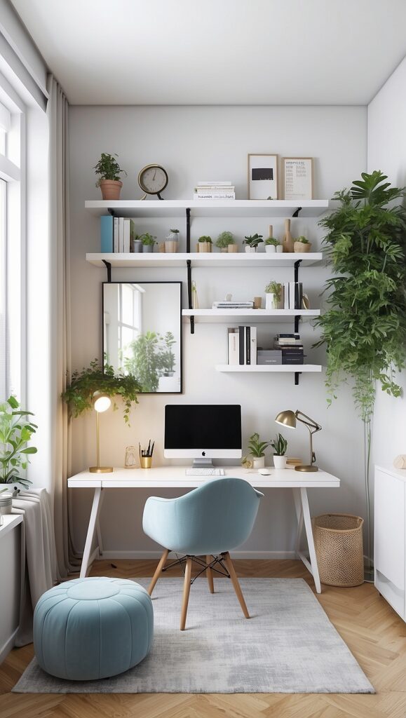 Add a stylish desk lamp that provides focused illumination. Adjustable lamps allow you to direct light where needed without overwhelming the room.