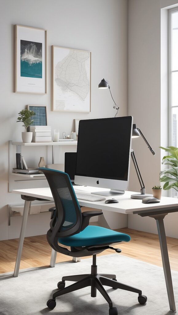 An ergonomic chair supports posture and prevents back pain. Instead of settling for a bulky corporate-style chair, consider modern ergonomic options with sleek silhouettes. Many contemporary designs combine mesh backs and neutral upholstery that blend seamlessly into stylish decor.