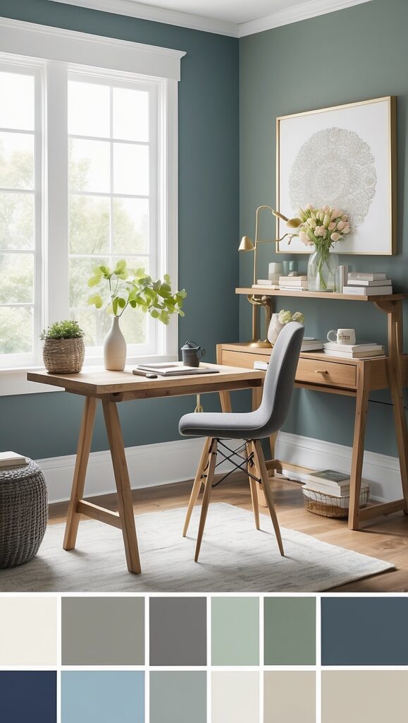 If you want subtle warmth, consider soft neutrals inspired by brands like Sherwin-Williams or Benjamin Moore, known for refined home office-friendly hues.