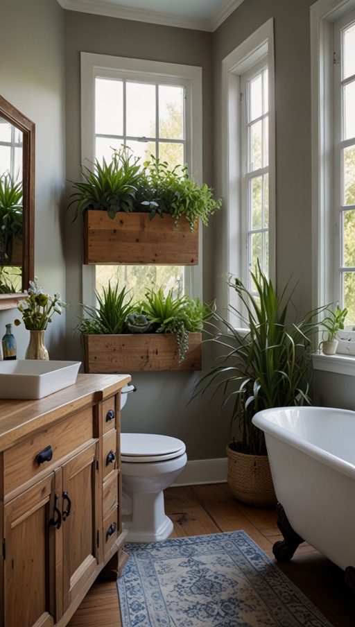 Small bathrooms can benefit from compact plants like succulents or air plants placed on shelves or windowsills. Larger bathrooms can accommodate statement plants in decorative planters. Hanging baskets, wall-mounted planters, and corner stands allow creative placement without sacrificing valuable floor space.