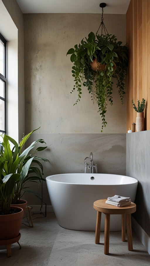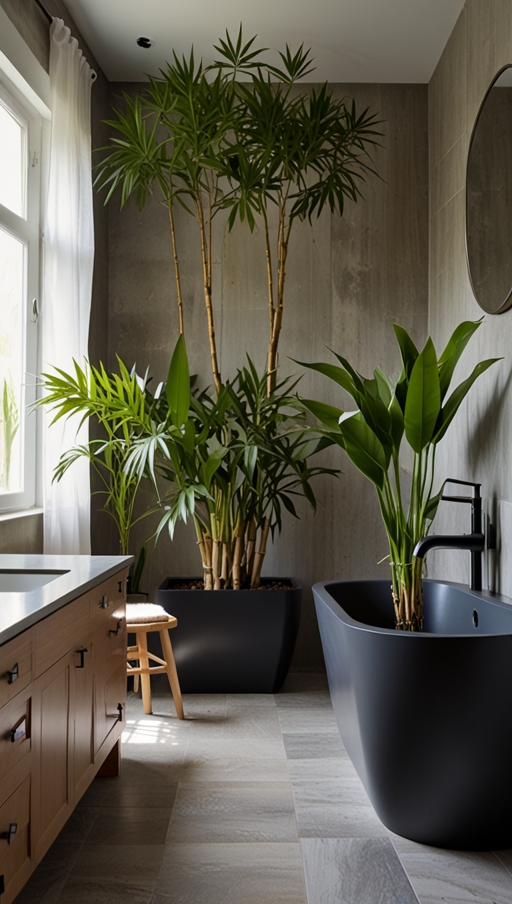 Large leafy plants near a soaking tub, hanging plants above the shower, or small potted herbs on a vanity all contribute to a tranquil ambiance. This connection to nature encourages slower, more mindful moments—turning daily routines into calming rituals.