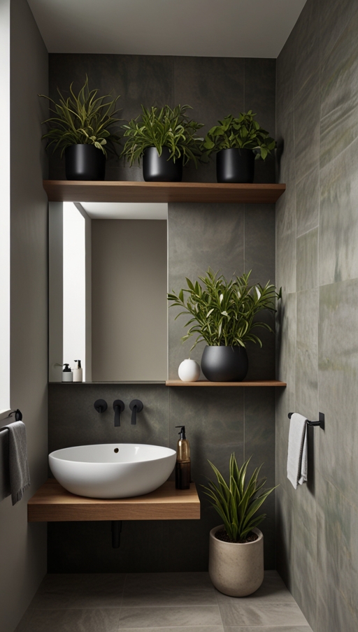 Natural elements like plants balance out cold, sterile materials by adding softness and movement. Whether it’s a trailing pothos on a shelf or a leafy fern beside the bathtub, plants help the bathroom feel less mechanical and more welcoming.