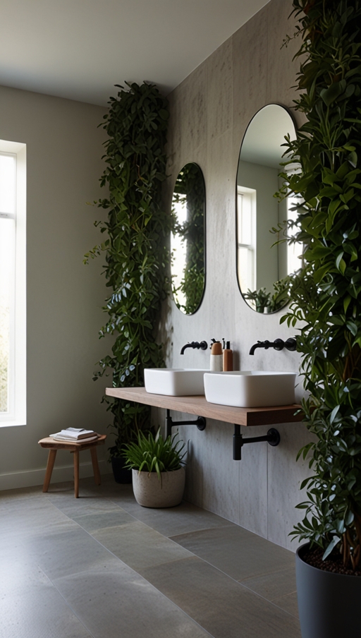A bathroom filled with natural elements encourages relaxation and mindfulness. Whether it’s enjoying a warm shower surrounded by greenery or washing your face beside a living plant, these moments of connection to nature can create a more balanced and peaceful lifestyle.